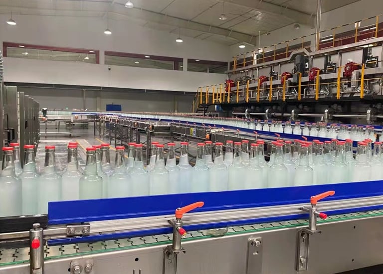 Glass bottle heating by heat pumps system in Jilin beverage factory.